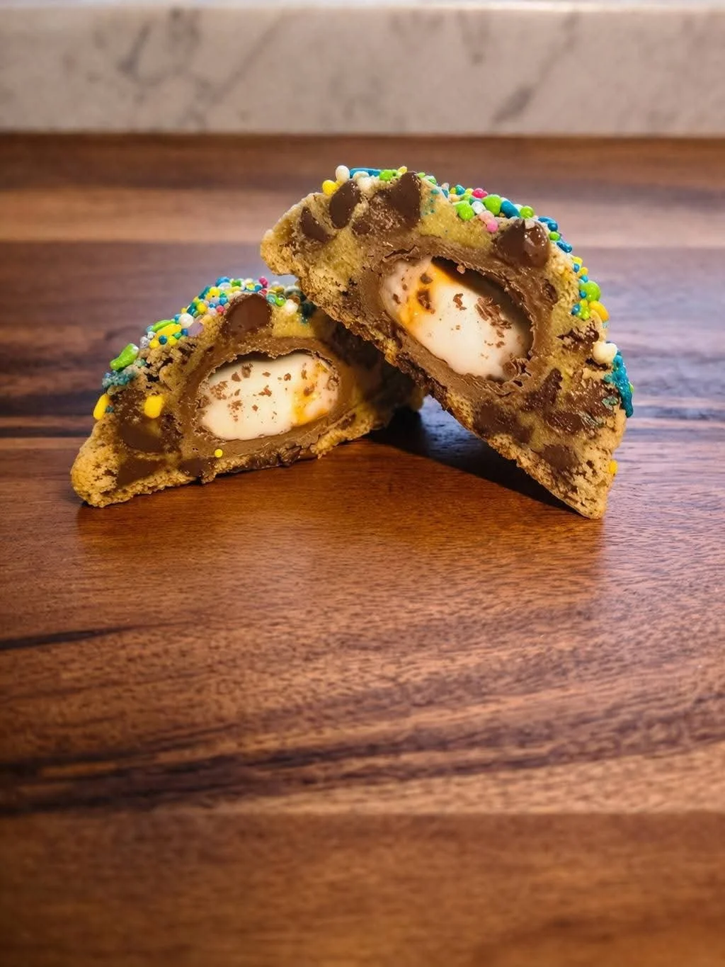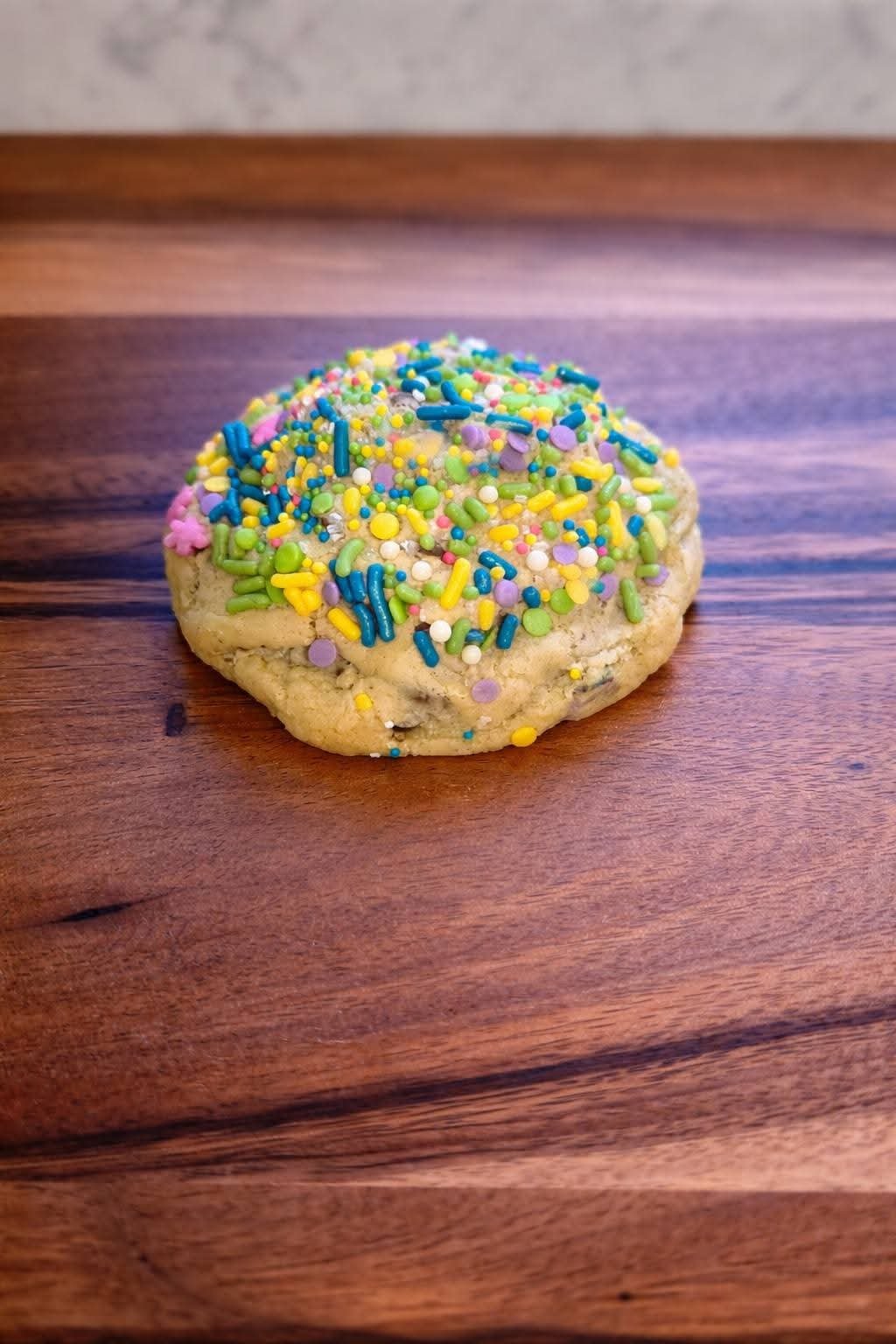 A thick chocolate chip cookie absolutely LOADED with Cadbury eggs, melty chocolate, and topped with sprinkles because we’re not here to be subtle.